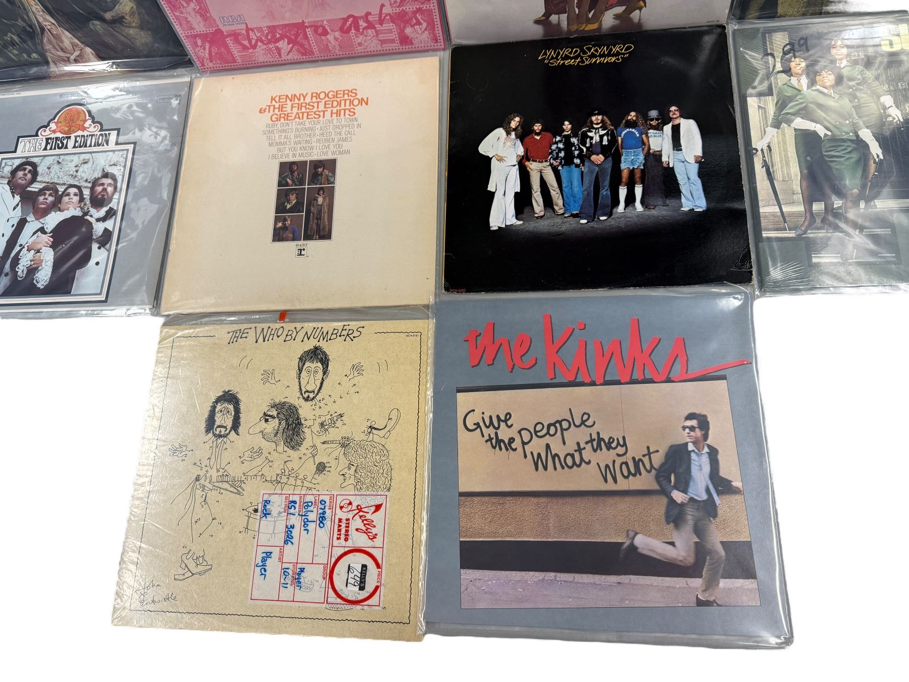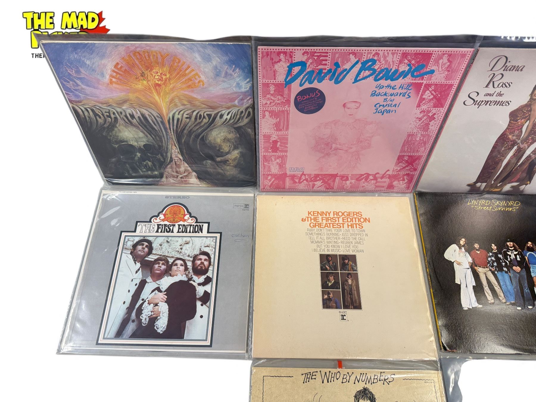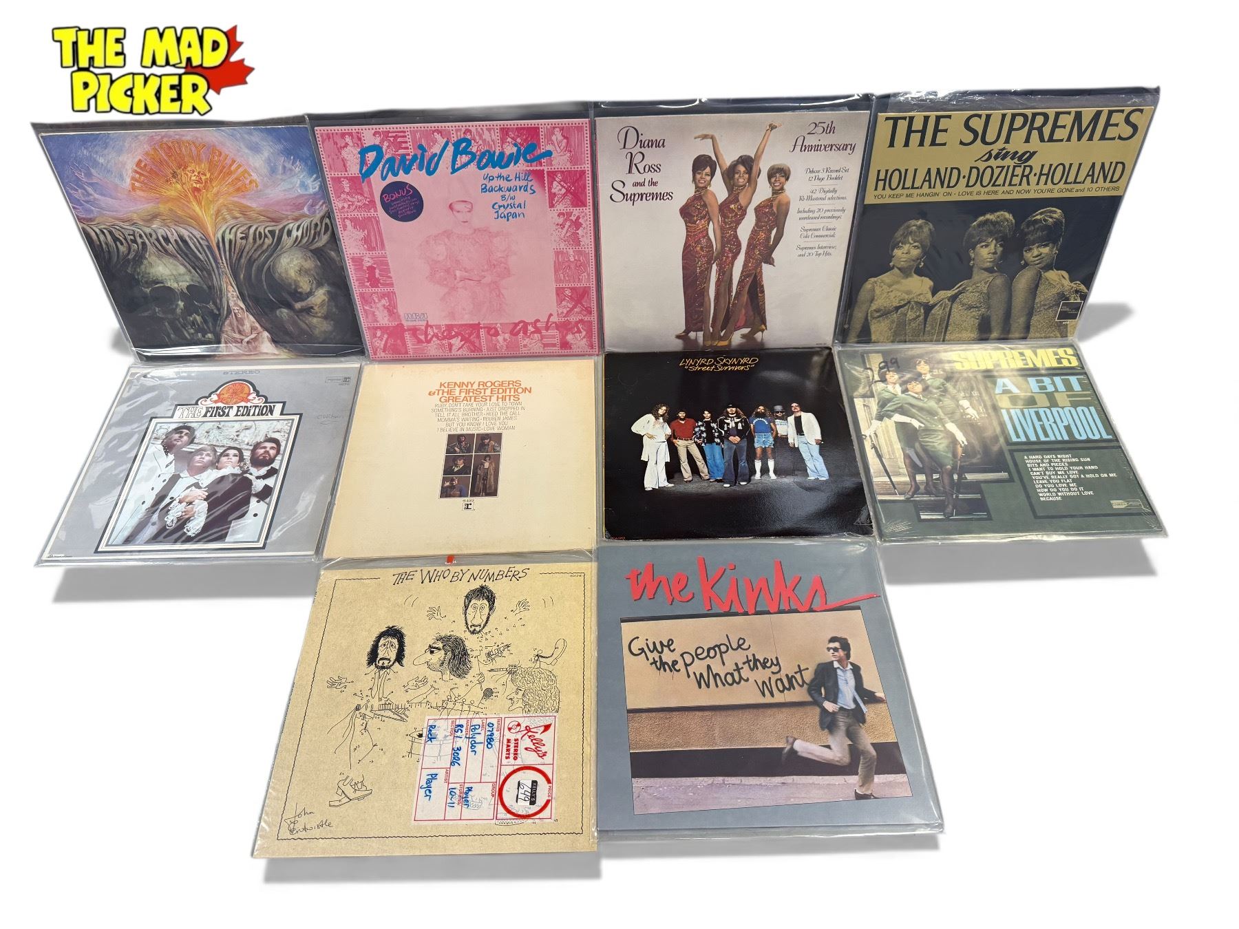 10 Assorted Vintage Records, The Kinks, The Supremes, The Moody Blues, David Bowie, Etc..