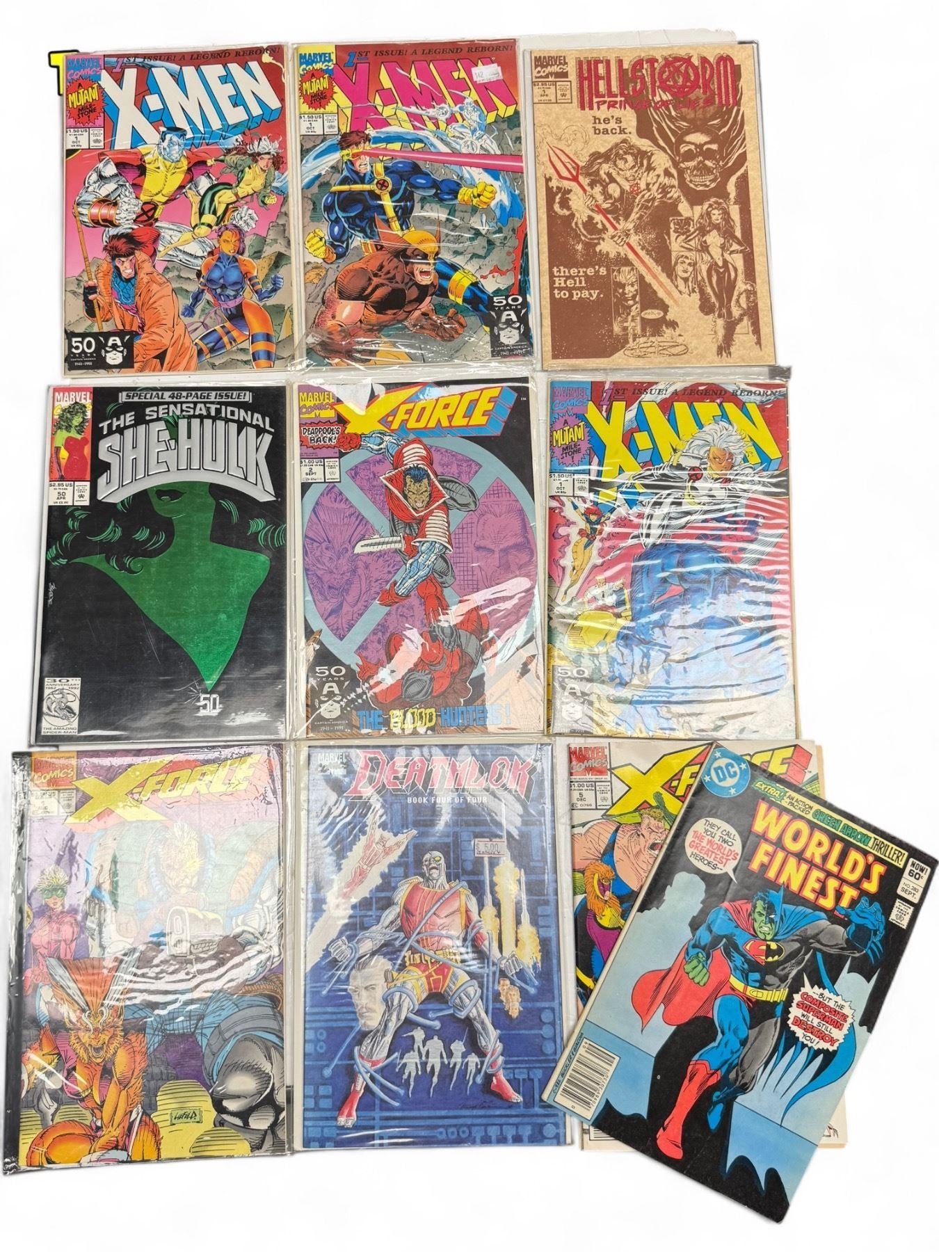 10x Assorted Comic Books: X-Men, Hellstorm, X-Force, World's Finest, She-Hulk, Deathlok