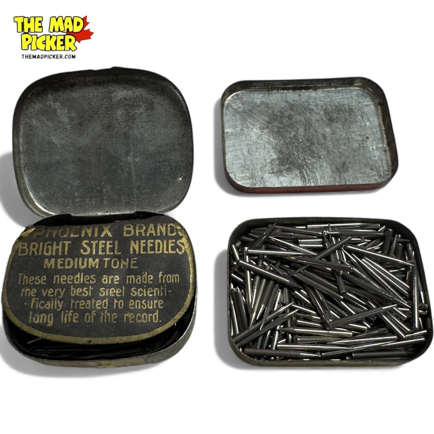 2 Vintage Gramophone Needle Tins, His Master'S Voice & Phoenix Brand