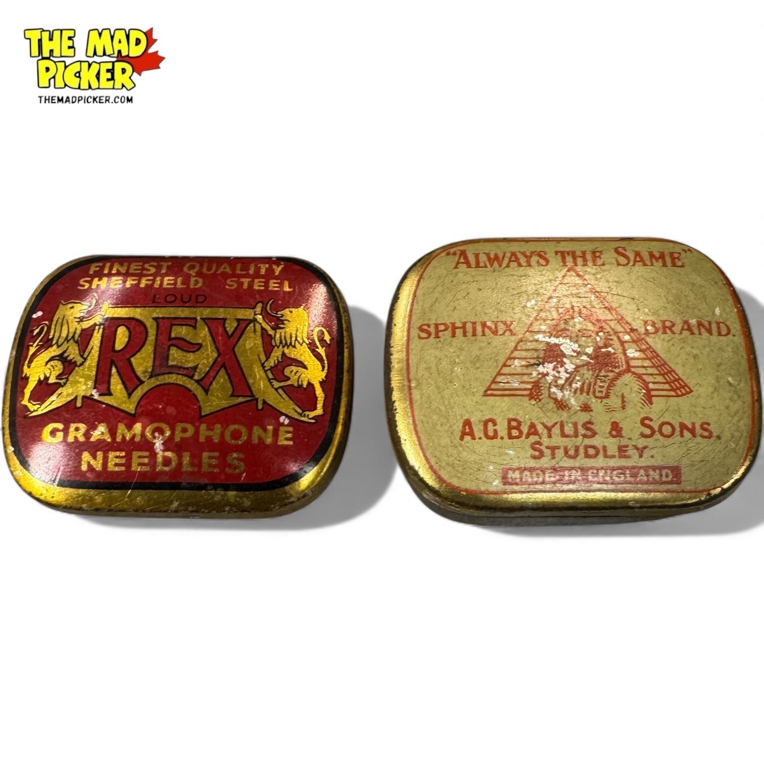 2 Vintage Gramophone Needle Tins, Sphinx Brand & Rex