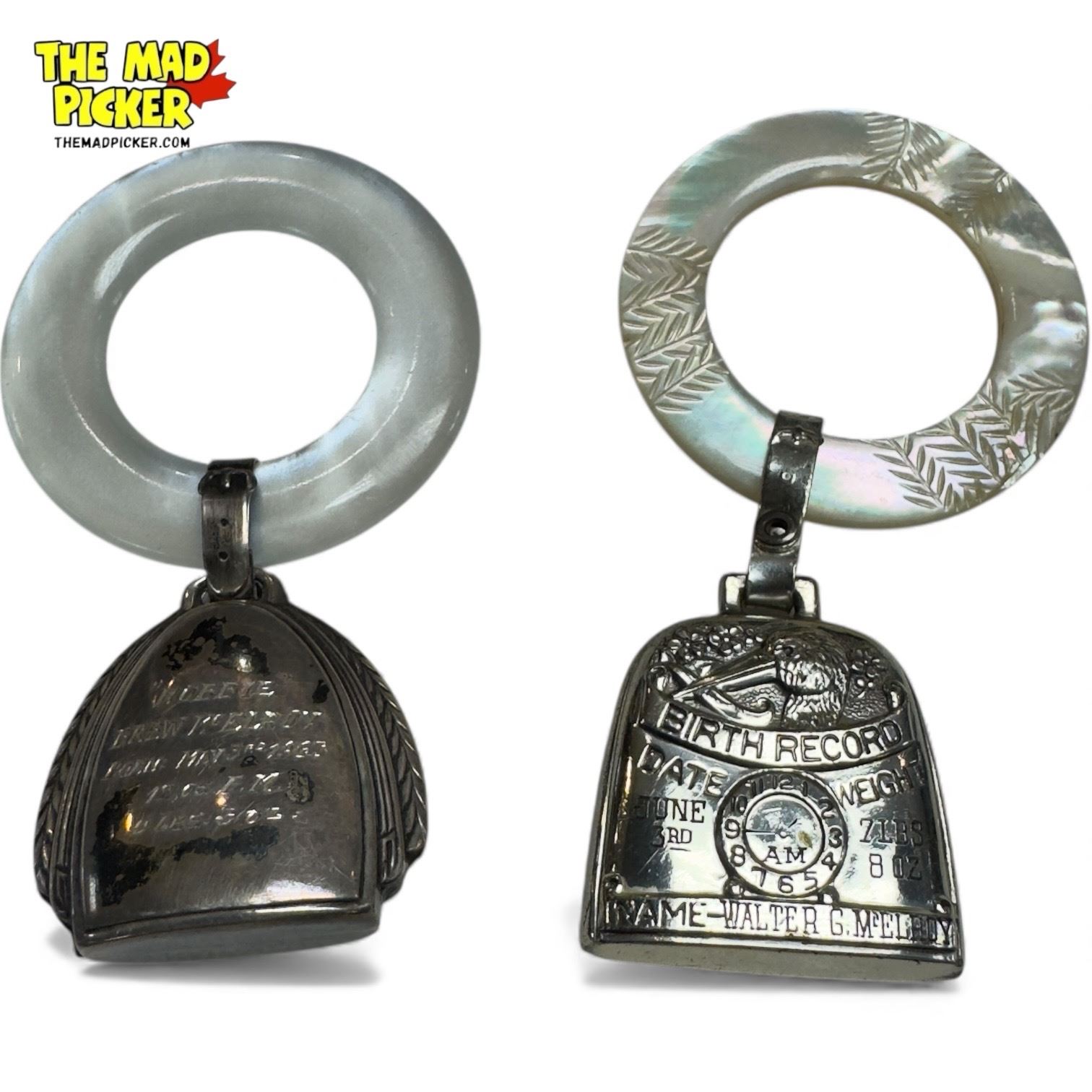 2 Vintage Sterling Silver Birth Records With Abalone Rings