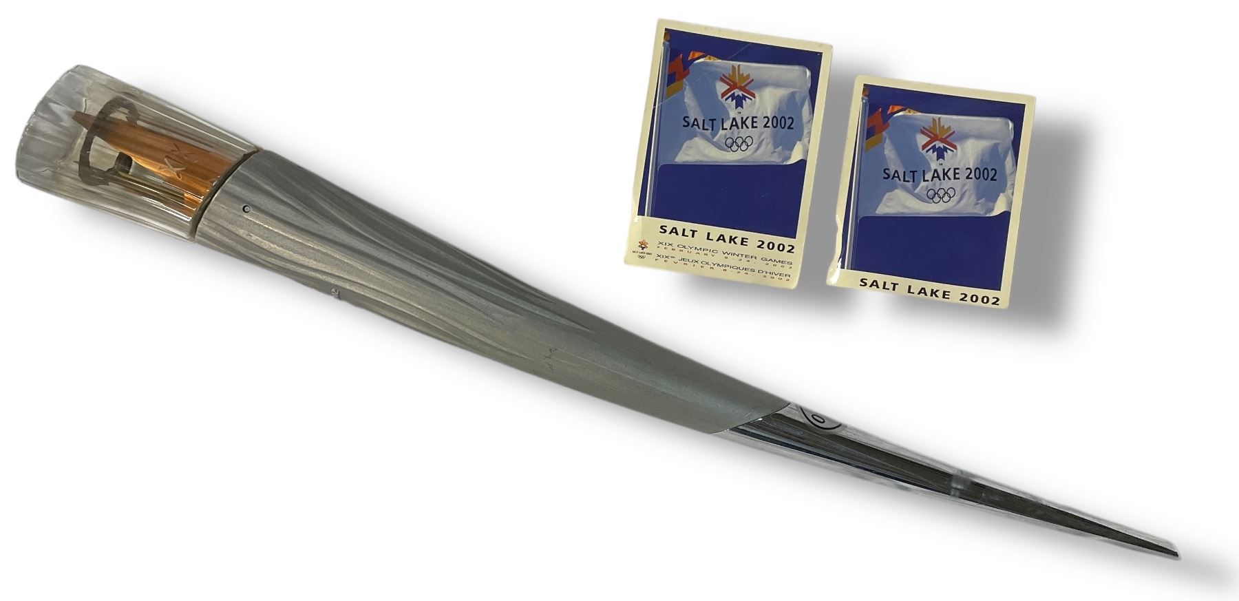2002 Salt Lake City Olyumpic Torch with 2 Advertising Cards - 33" Longh