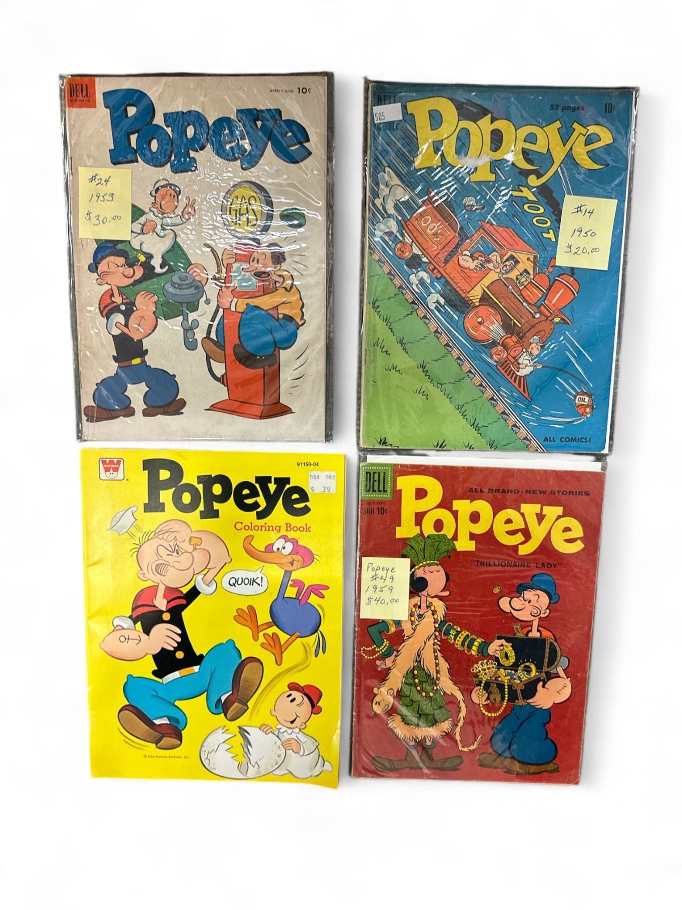 3 Vintage Assorted Del Popeye Comics & Whitman Popeye Coloring Book