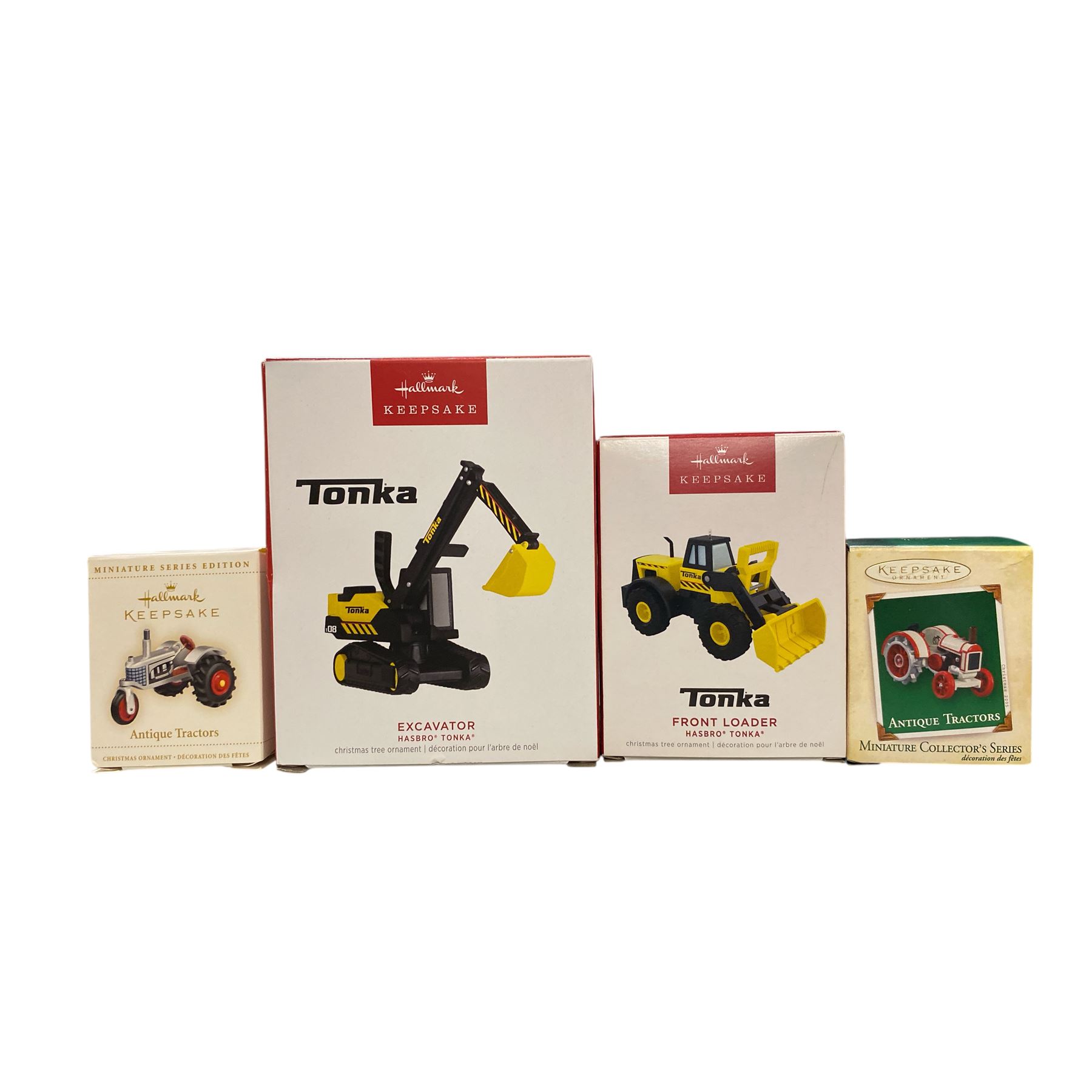 4 Hallmark Keepsake Christmas Tree Ornaments in Original Boxes - 2 Tonka & 2 Miniature Tractors