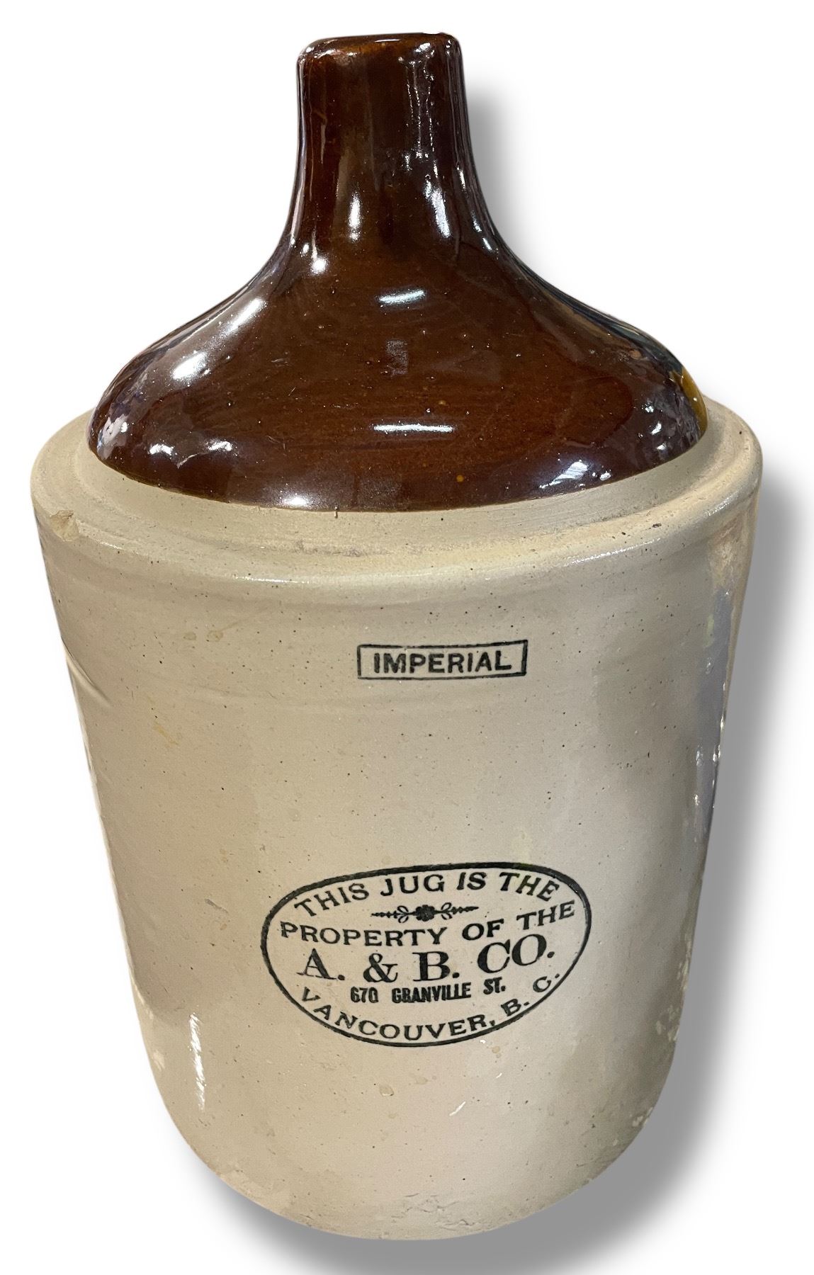 A. & B. Co. 670 Granville Street Glazed Pottery Crock/Jug