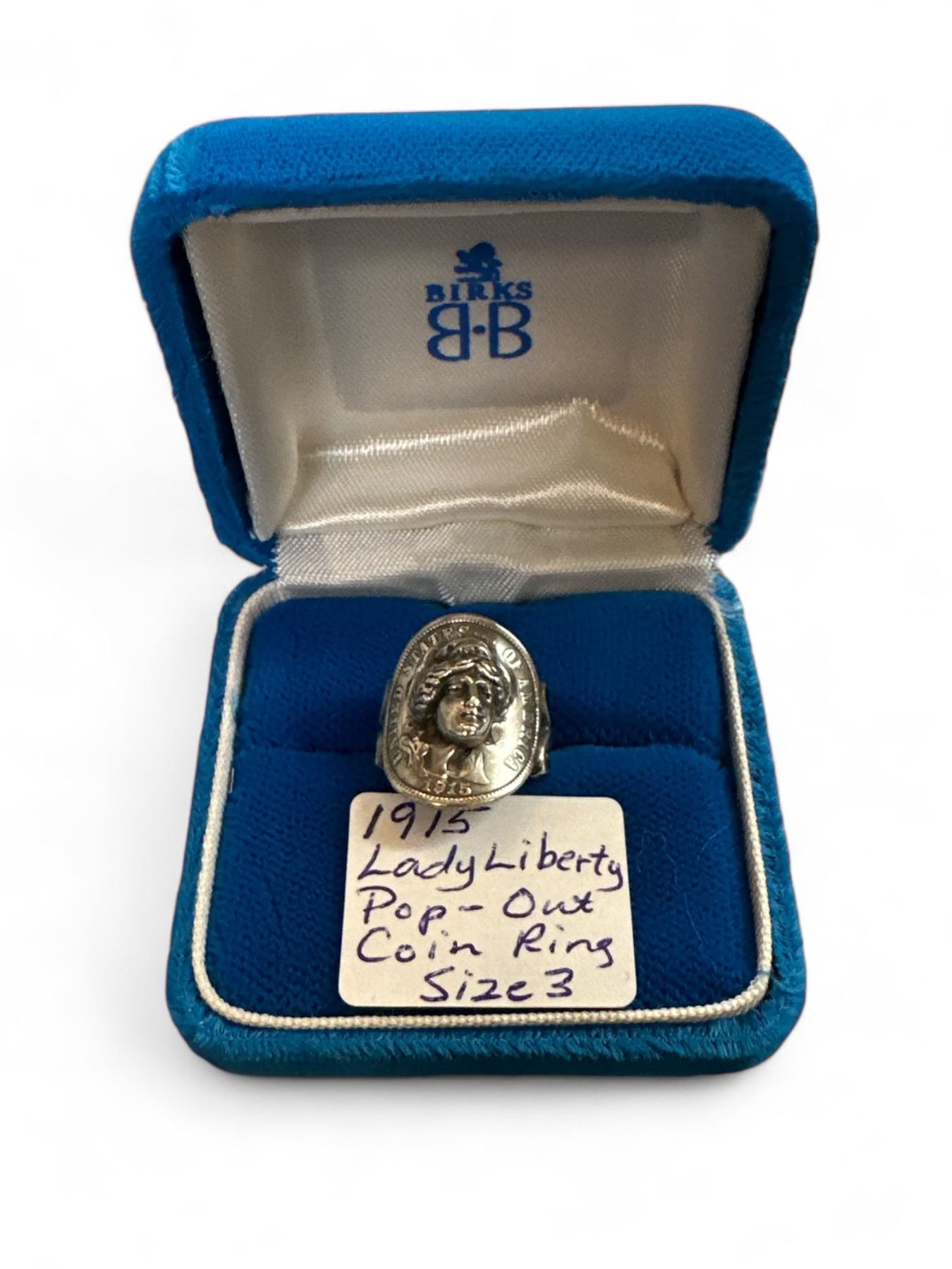 Antique 1915 Lady Liberty Pop Out Coin Sterling Ring Size 3
