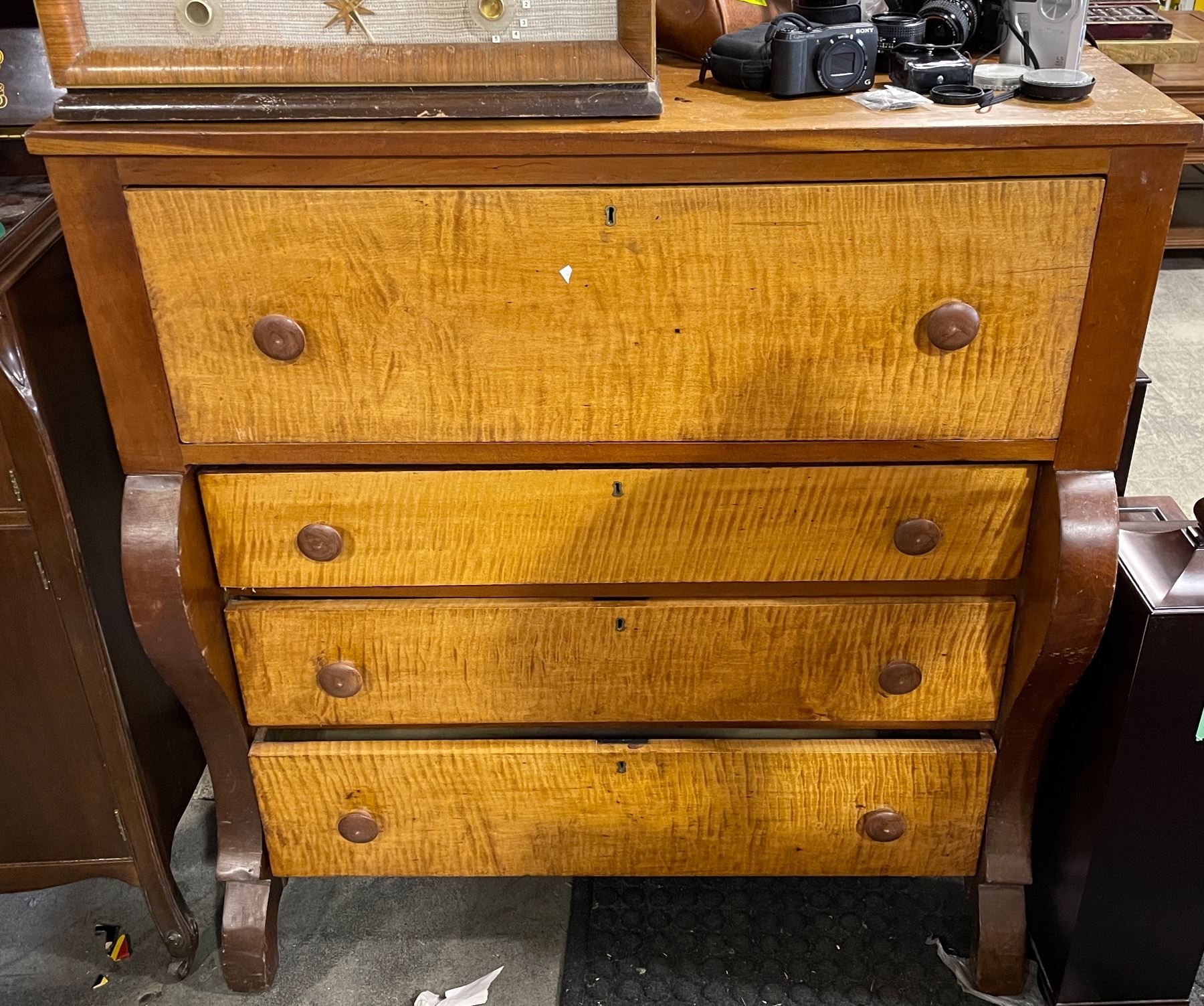 Antique Canadiana Maple 4 Drawer Dresser with Tiger Maple Fronts - 22" x 42" x 44" Tall. Circa:1880.