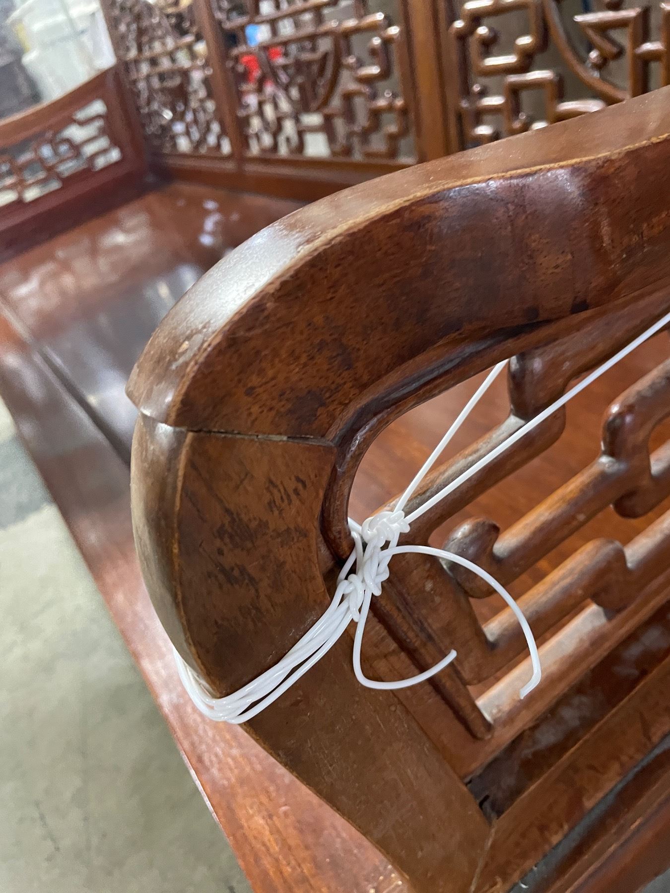 Asian Rosewood Bench - 71" Long - One arm needs mending