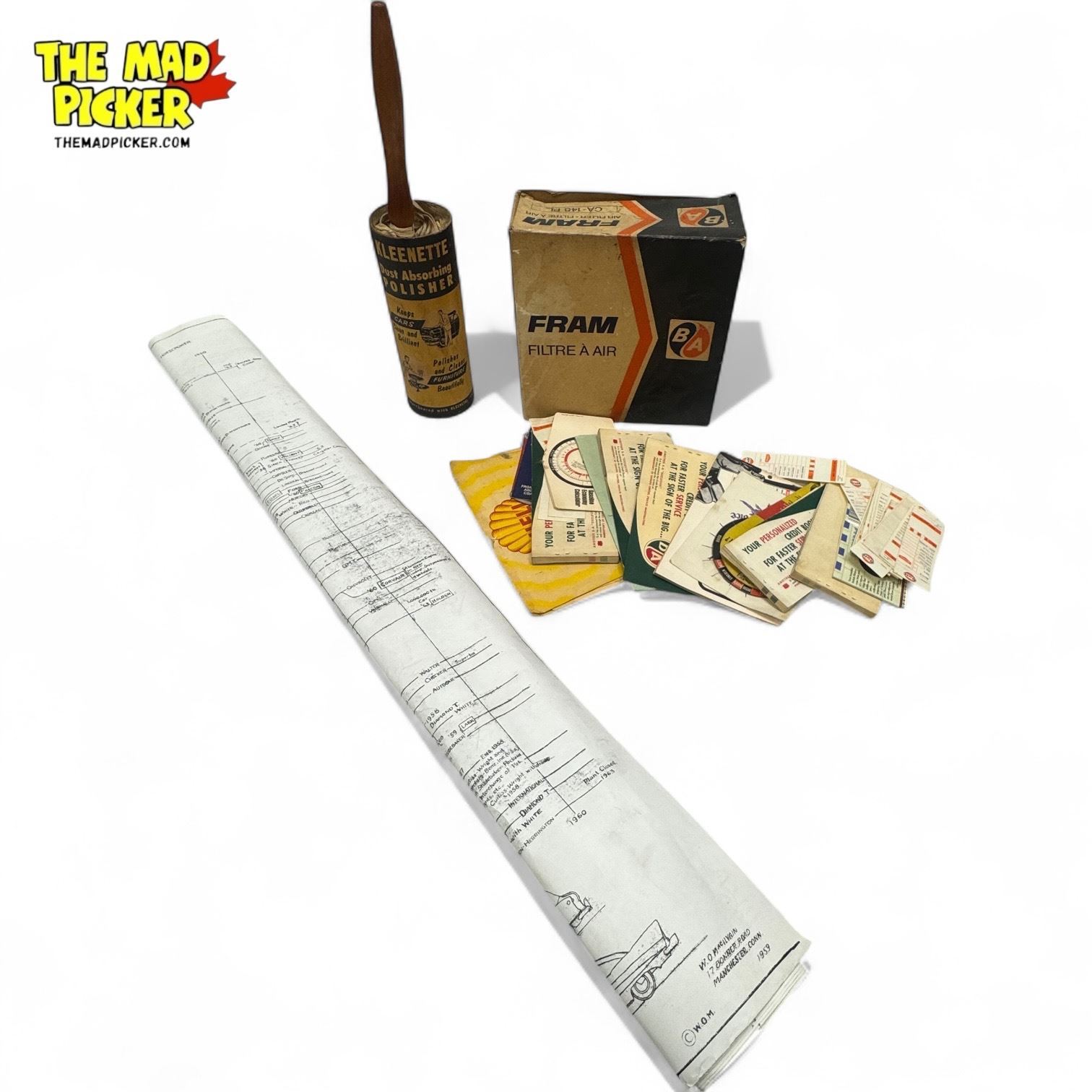 Assorted Automotive Collectibles: BA Fram Air Filter, Ephemera, Kleenette