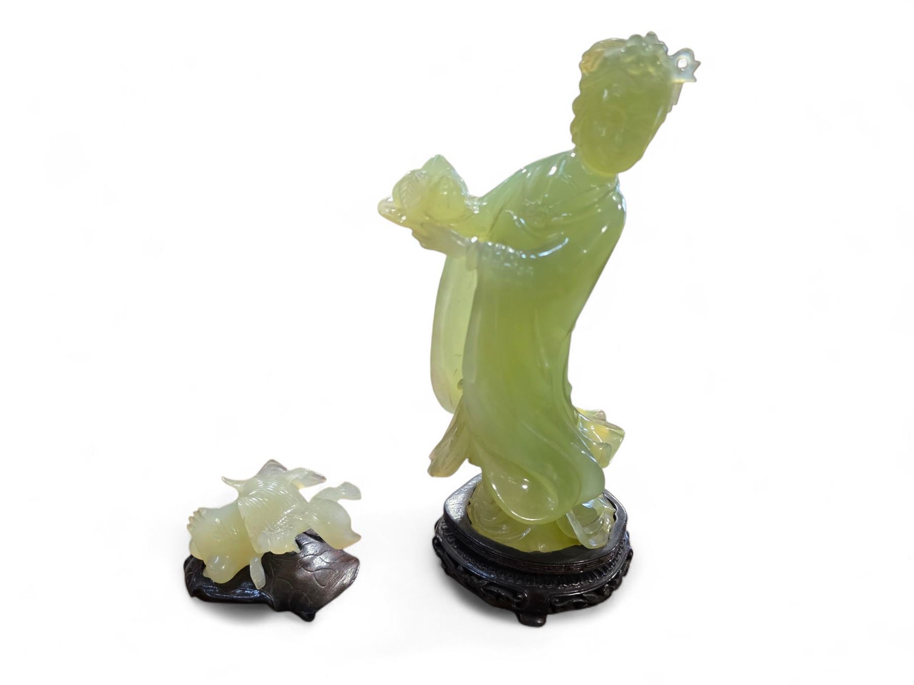 Carved Green 10" Goddess Statue and 3" Koi Fish Figurine