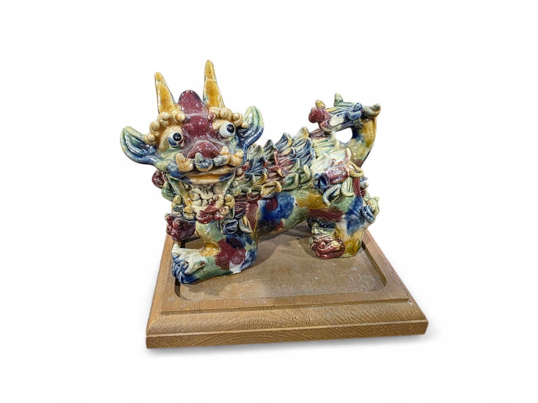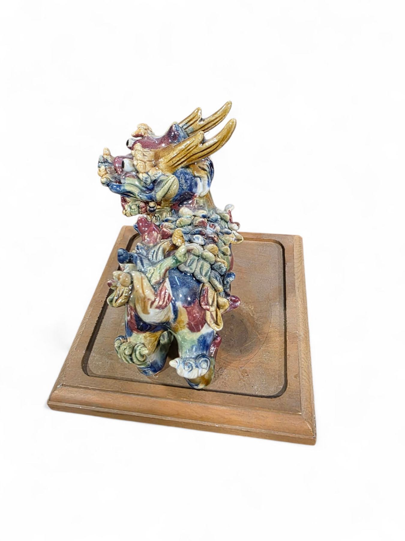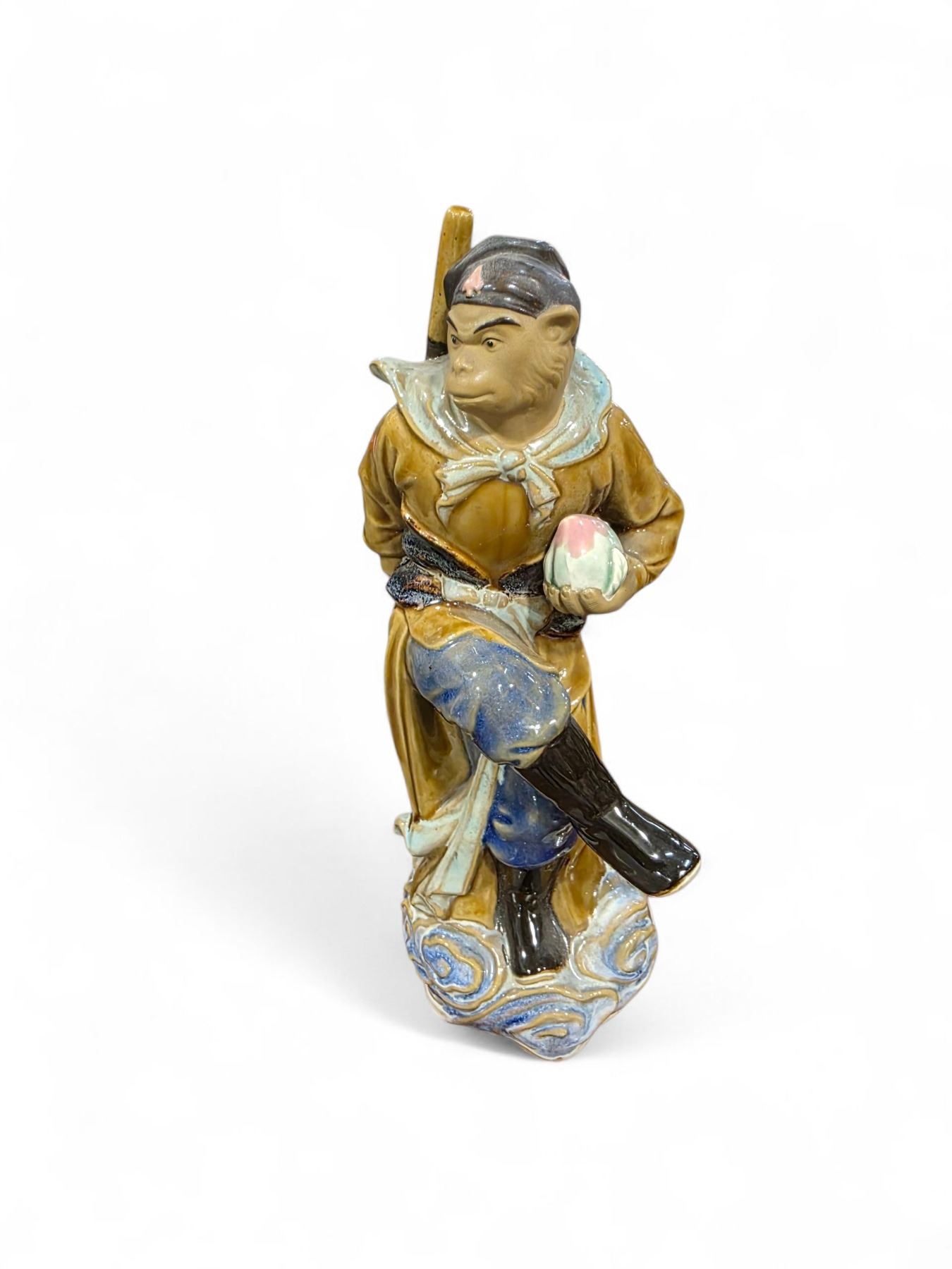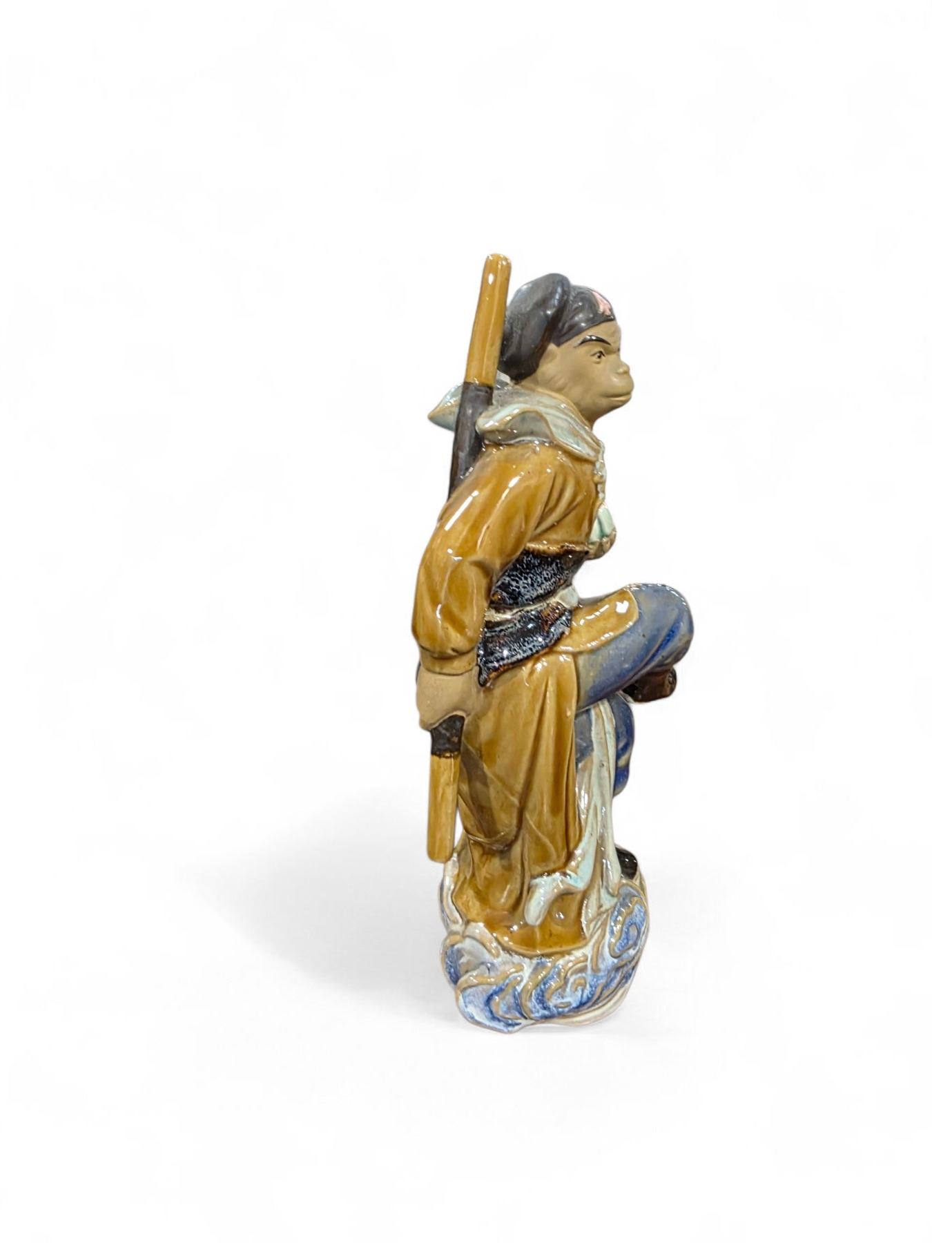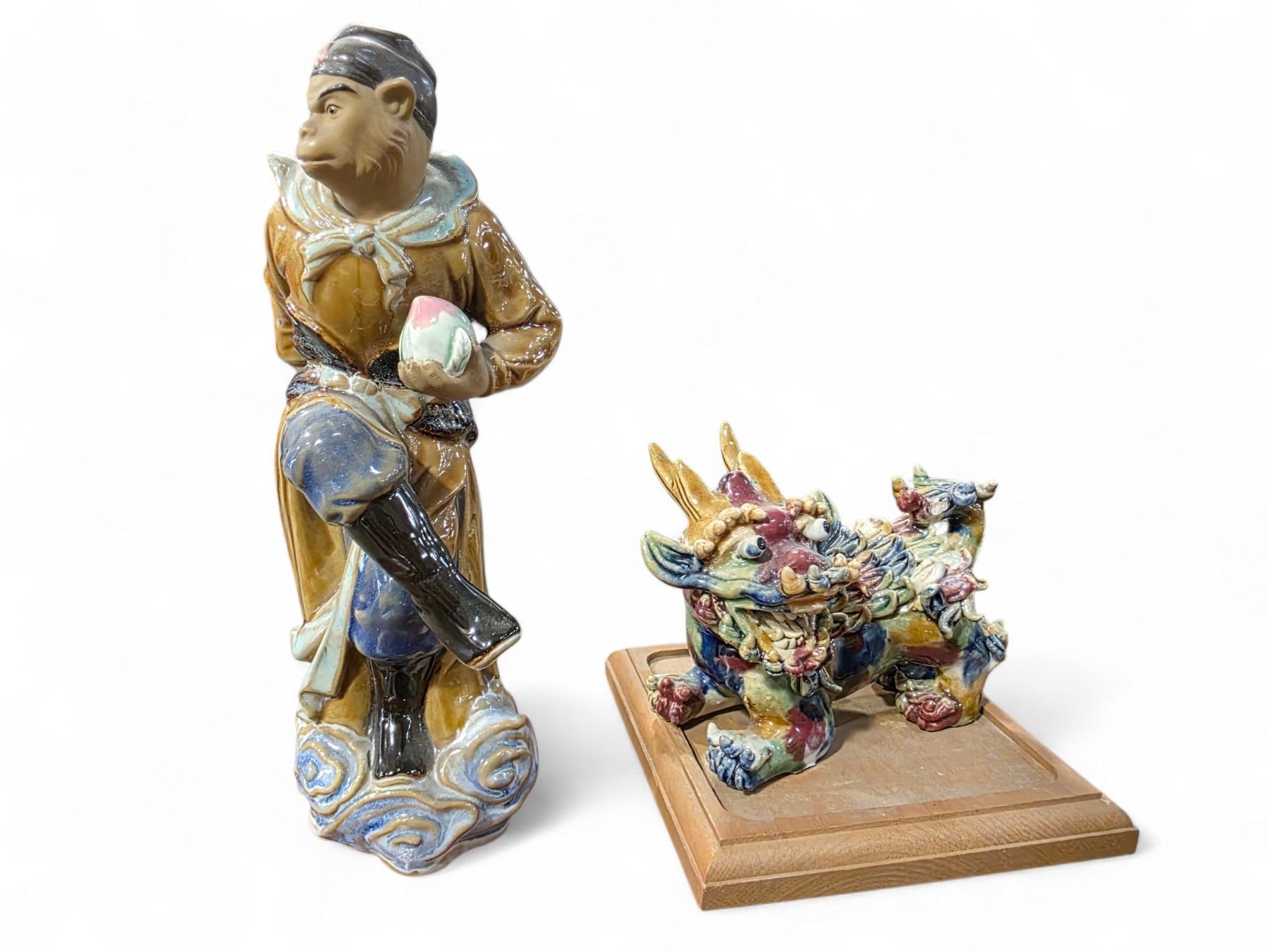 Chinese Glazed Pottery 10" Monkey King and 5" Foo Dog Figurines - Foo Dog has a flea bite