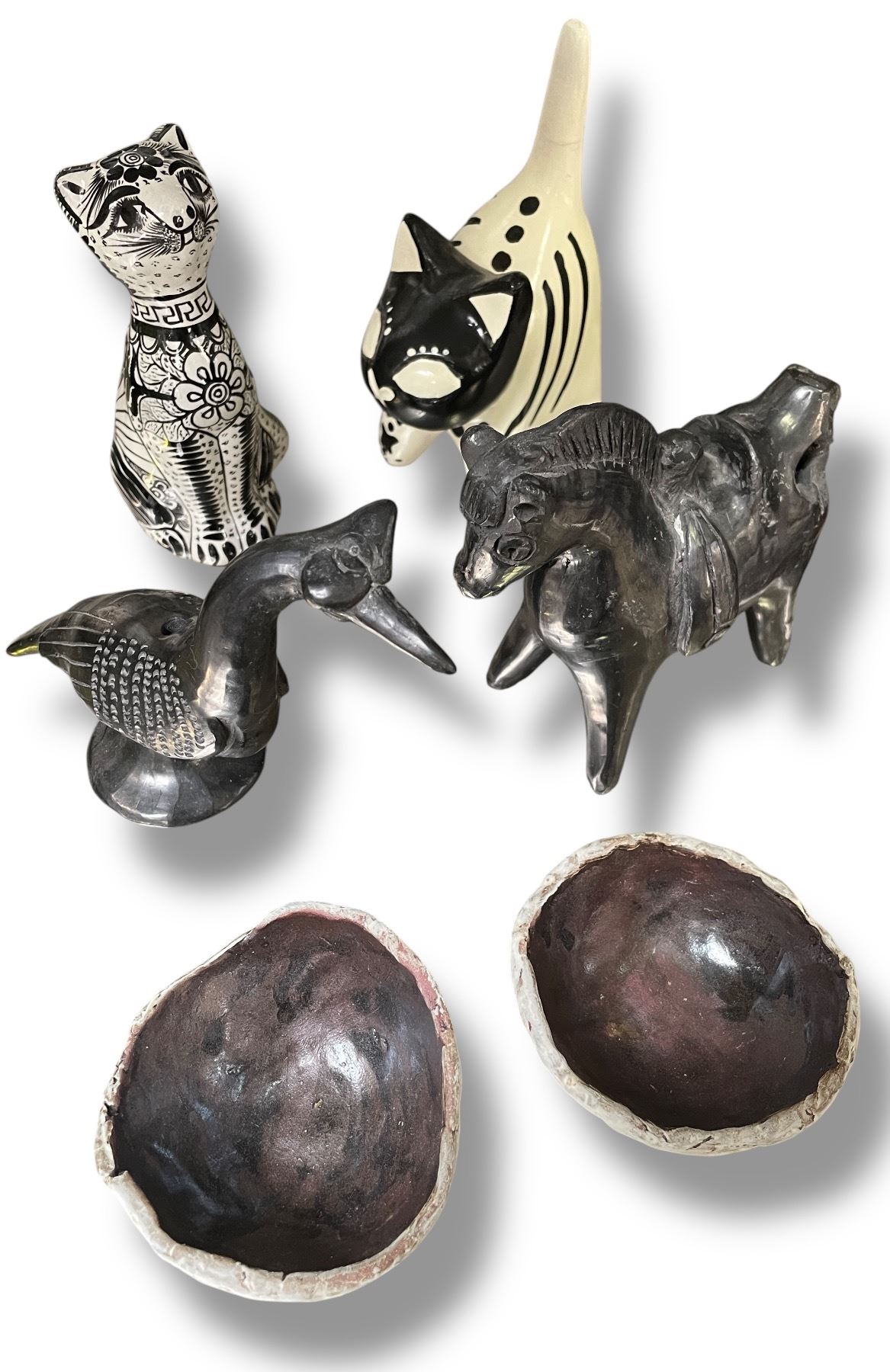 Collection of Animal Figurines & H2 Mini Pottery Bowls - Variety of Materials - Tallest is 6"