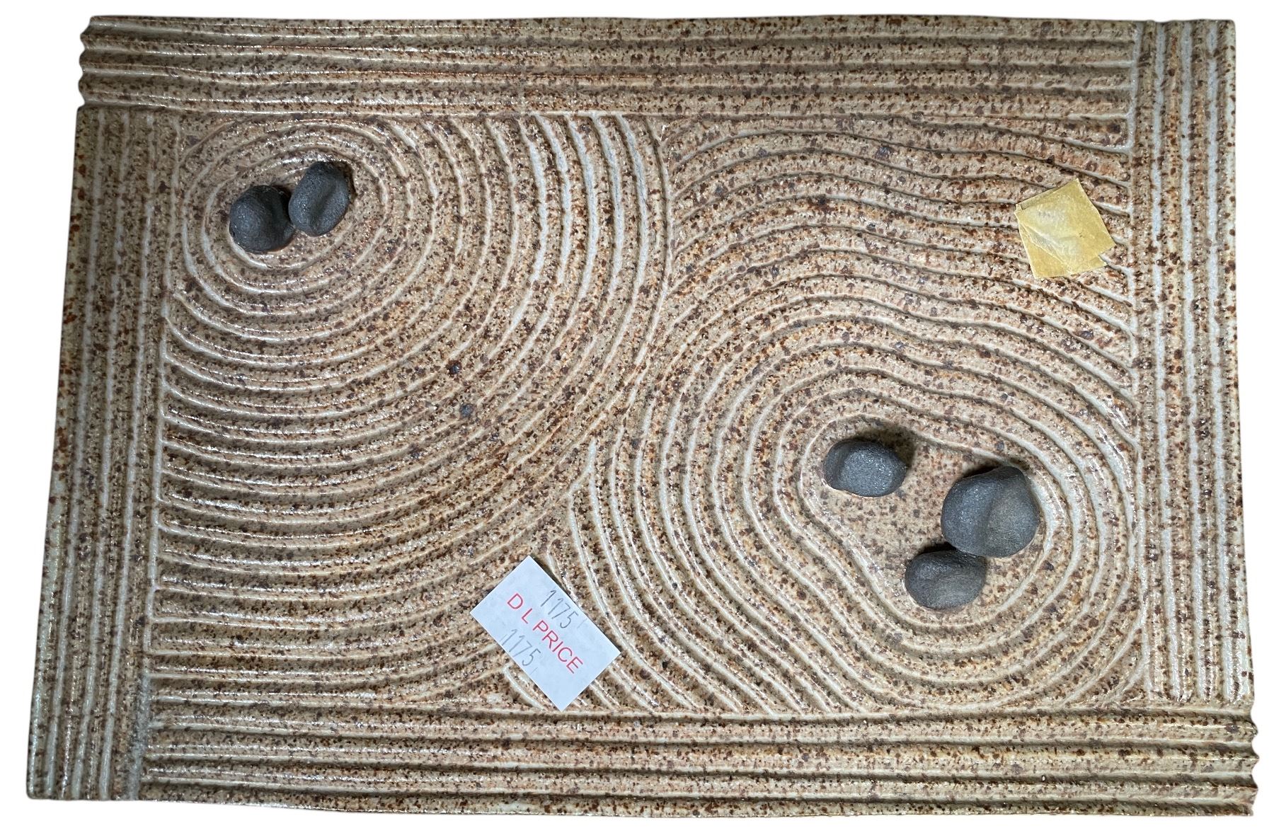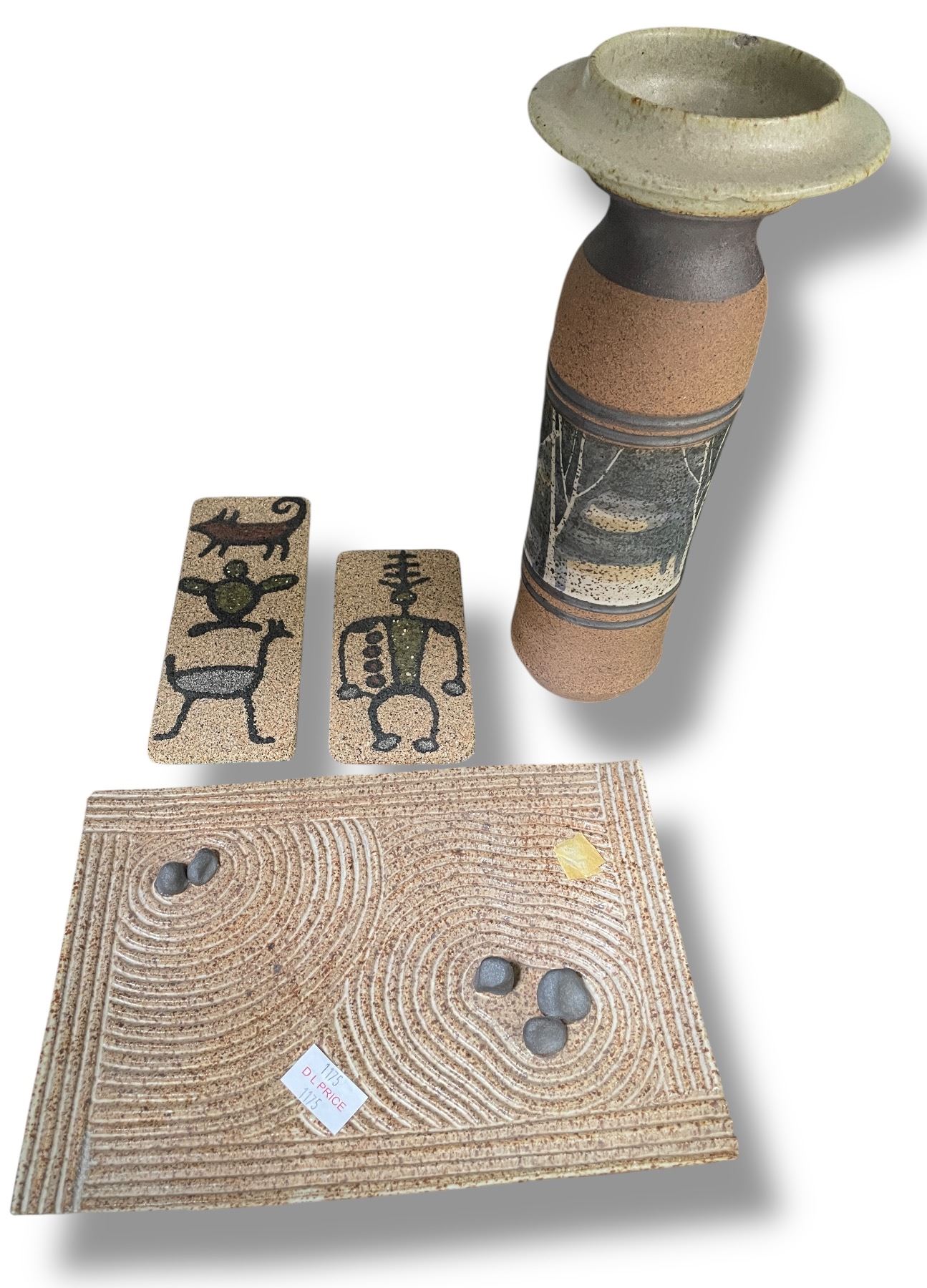 Cork Art, Pottery Sand Garden Tray & Peter Price " Vase ( small chips)
