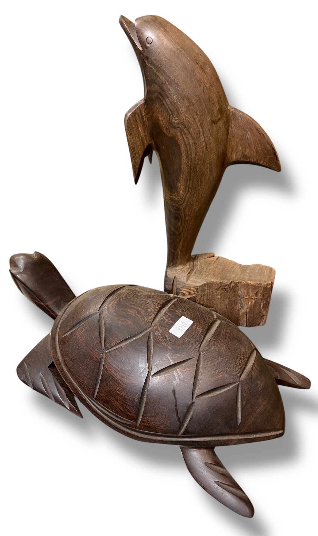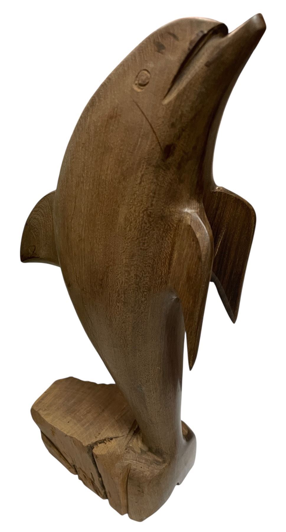 Hand Carved Wood Turtle and Dolphin - Dolphin is 12" Tall
