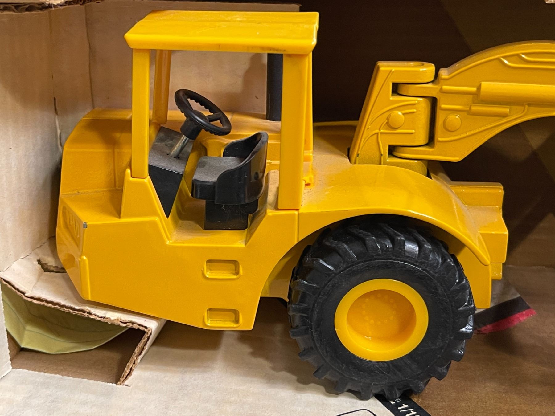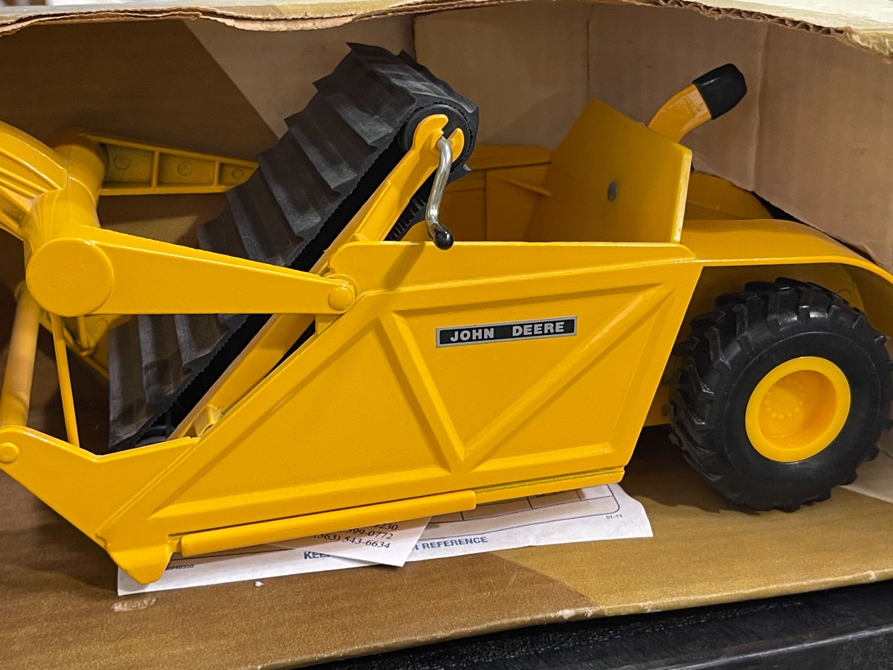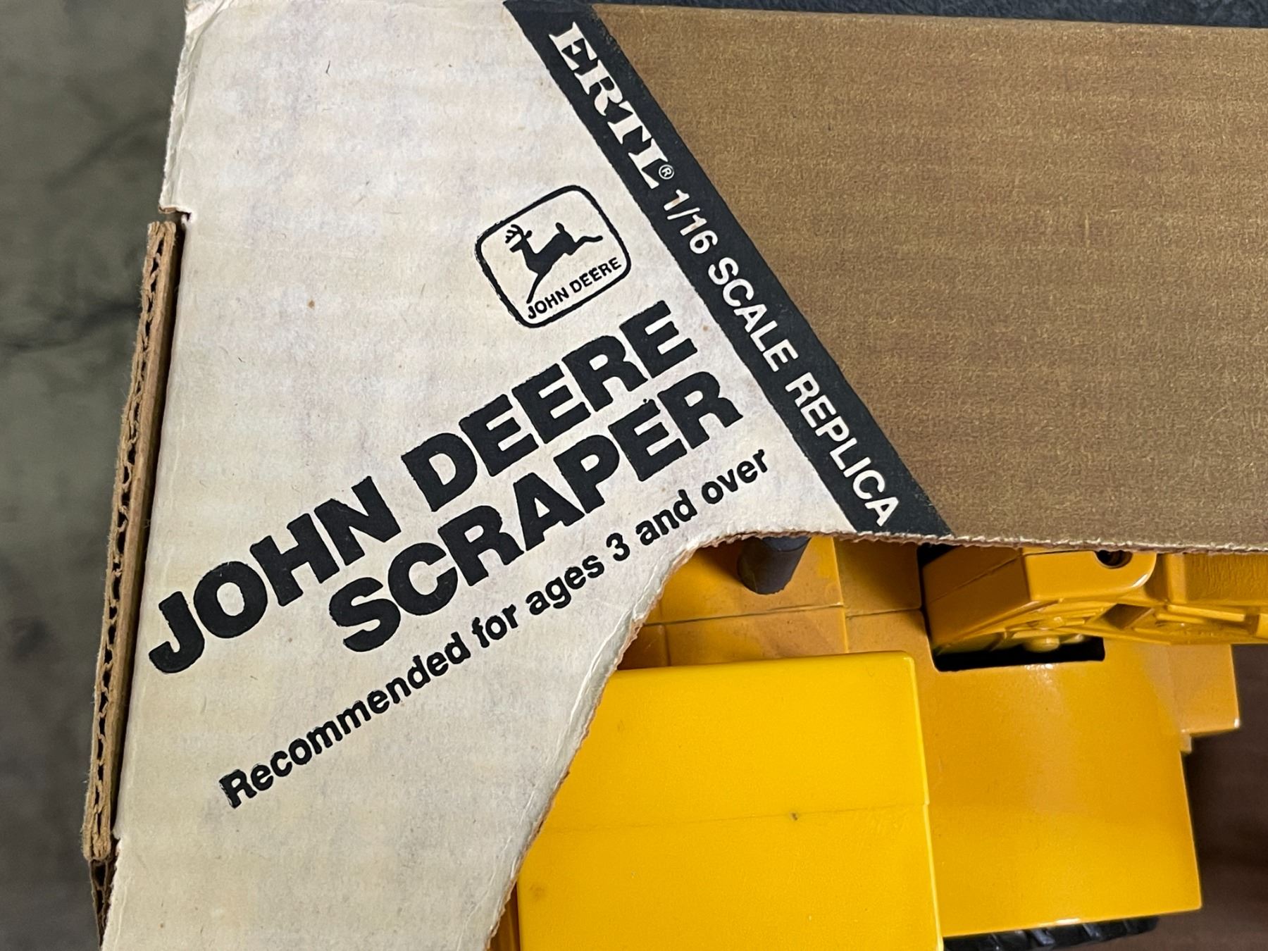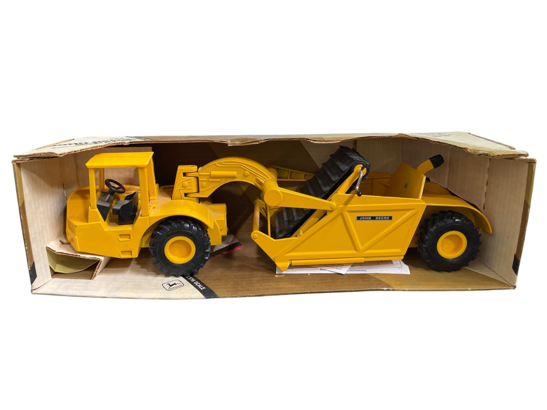 John Deere Yellow Scraper Tractor in Original Box - 1/16 Scale Farm Toy