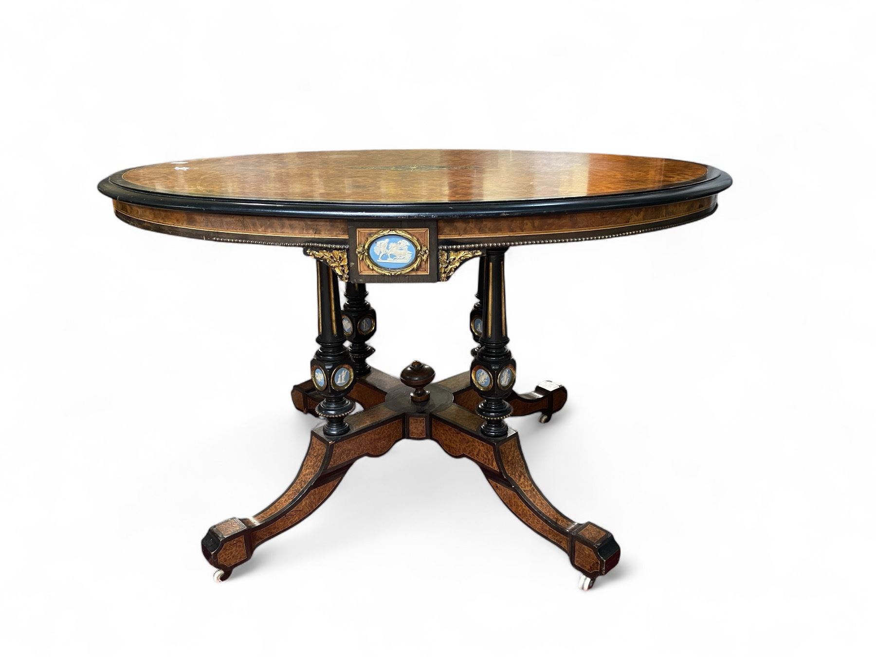 Vintage Amboyna Oval Table with Wedgwood Look Inserts - Top is 36" x 48"