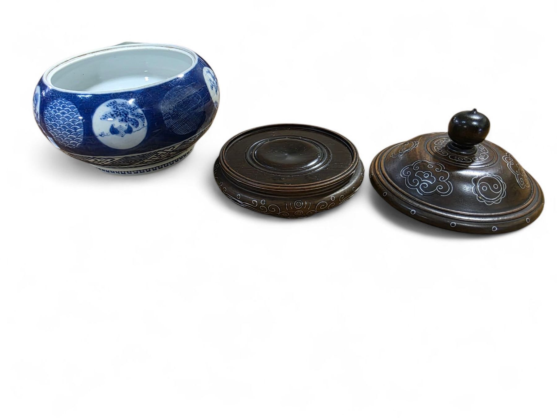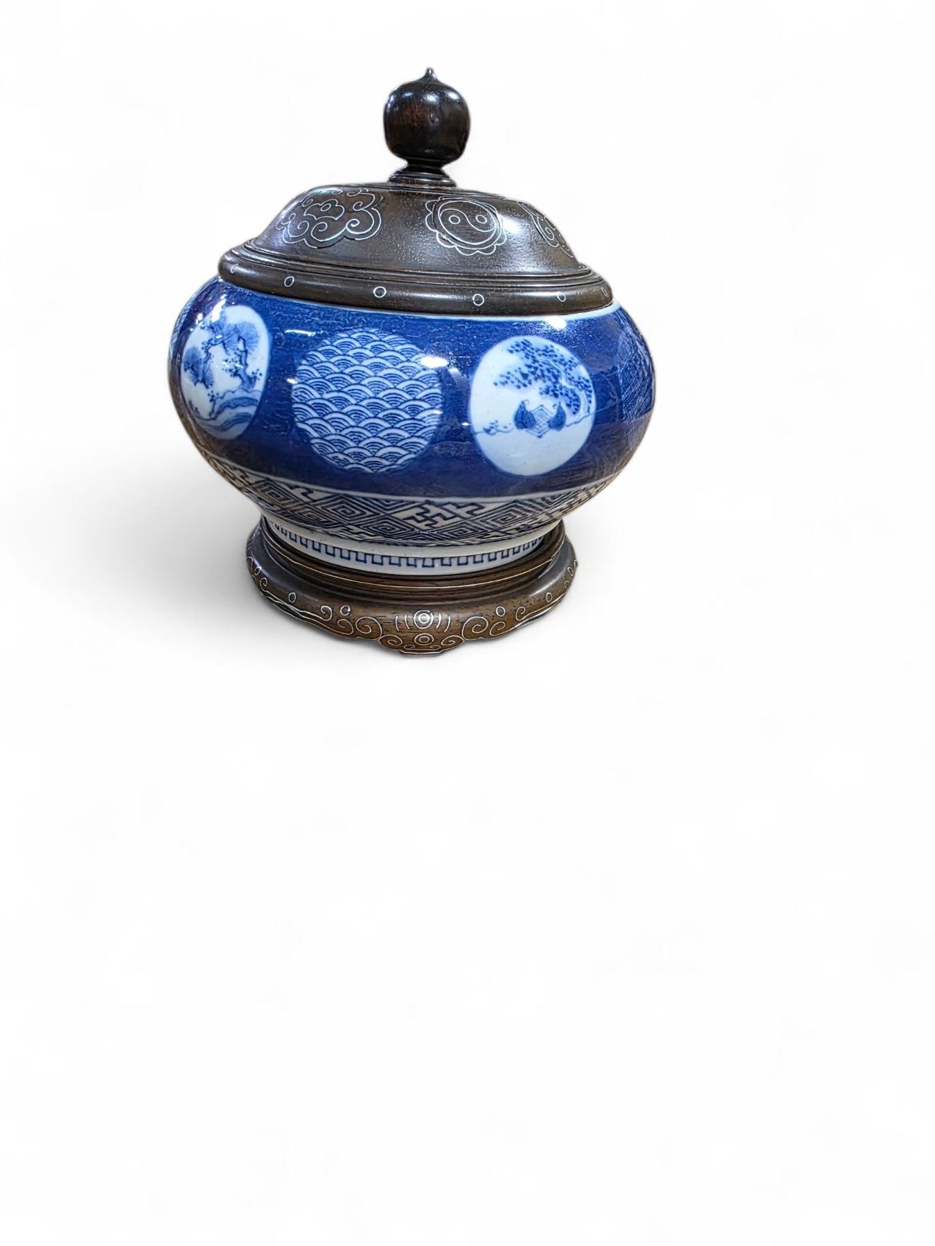 Vintage Asian Porcelain Bowl with Wood Lid - 6" Diameter x 4.5" tall