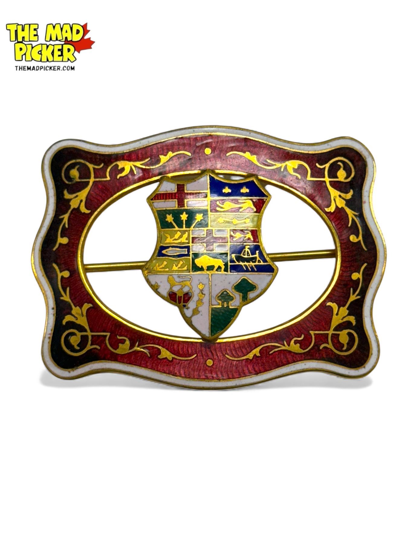 Vintage Brass & Enamel Brooch With British Iconography