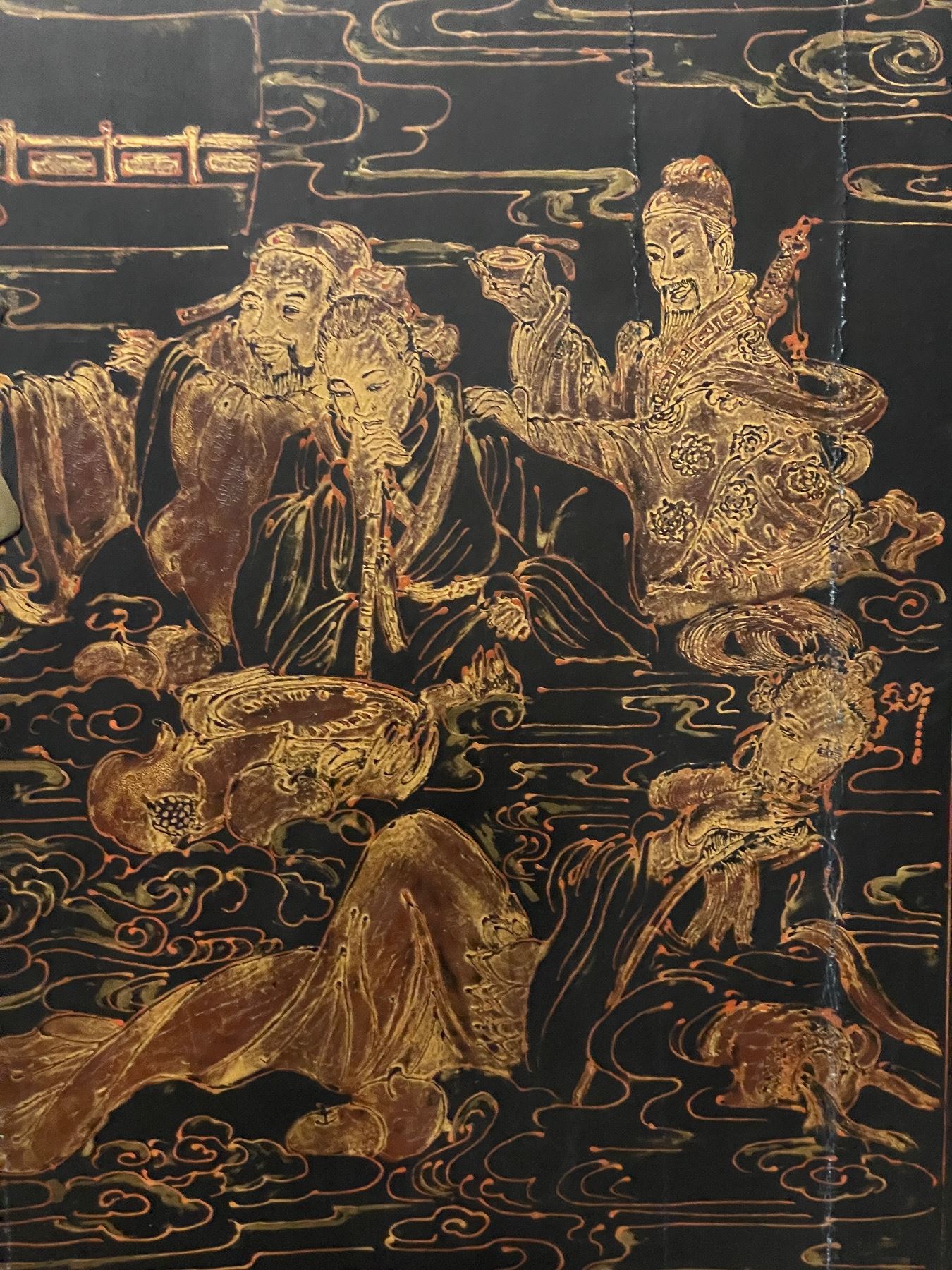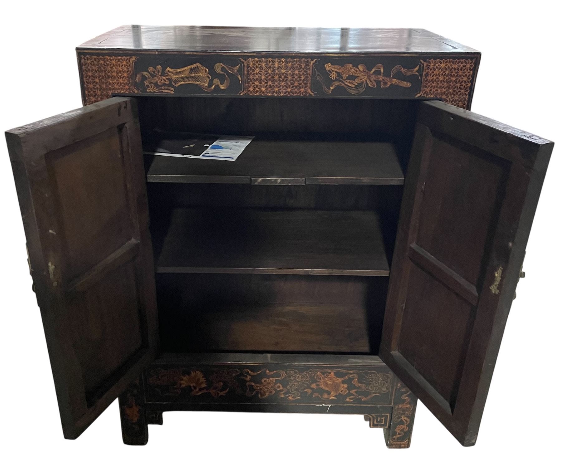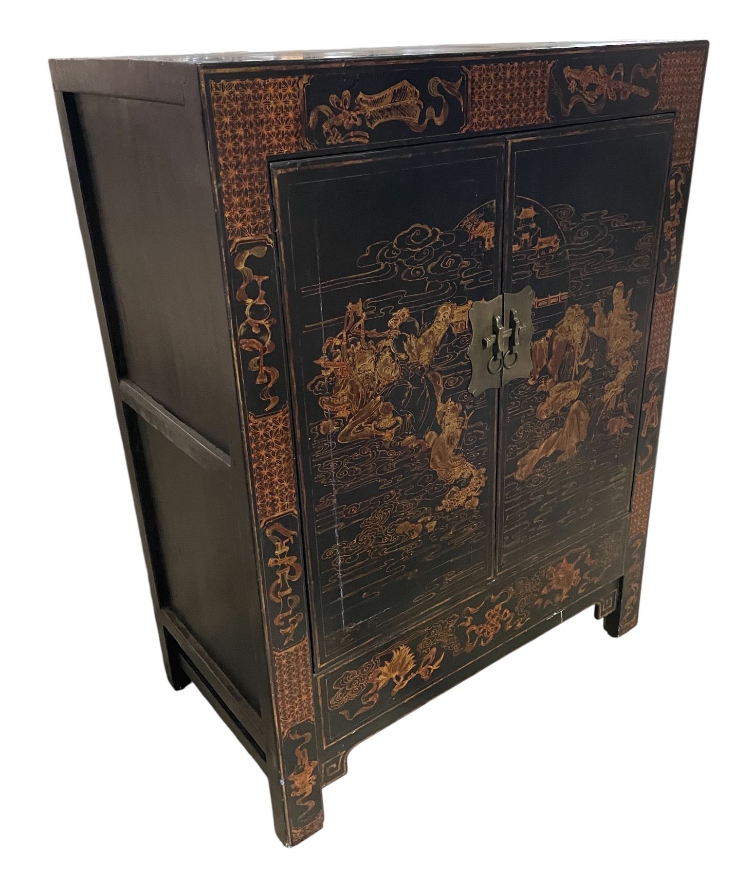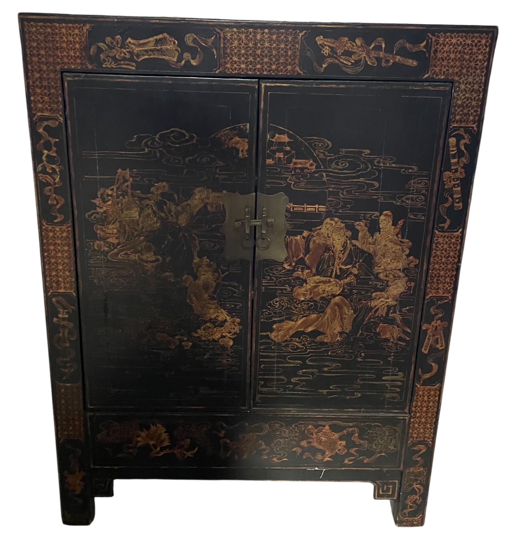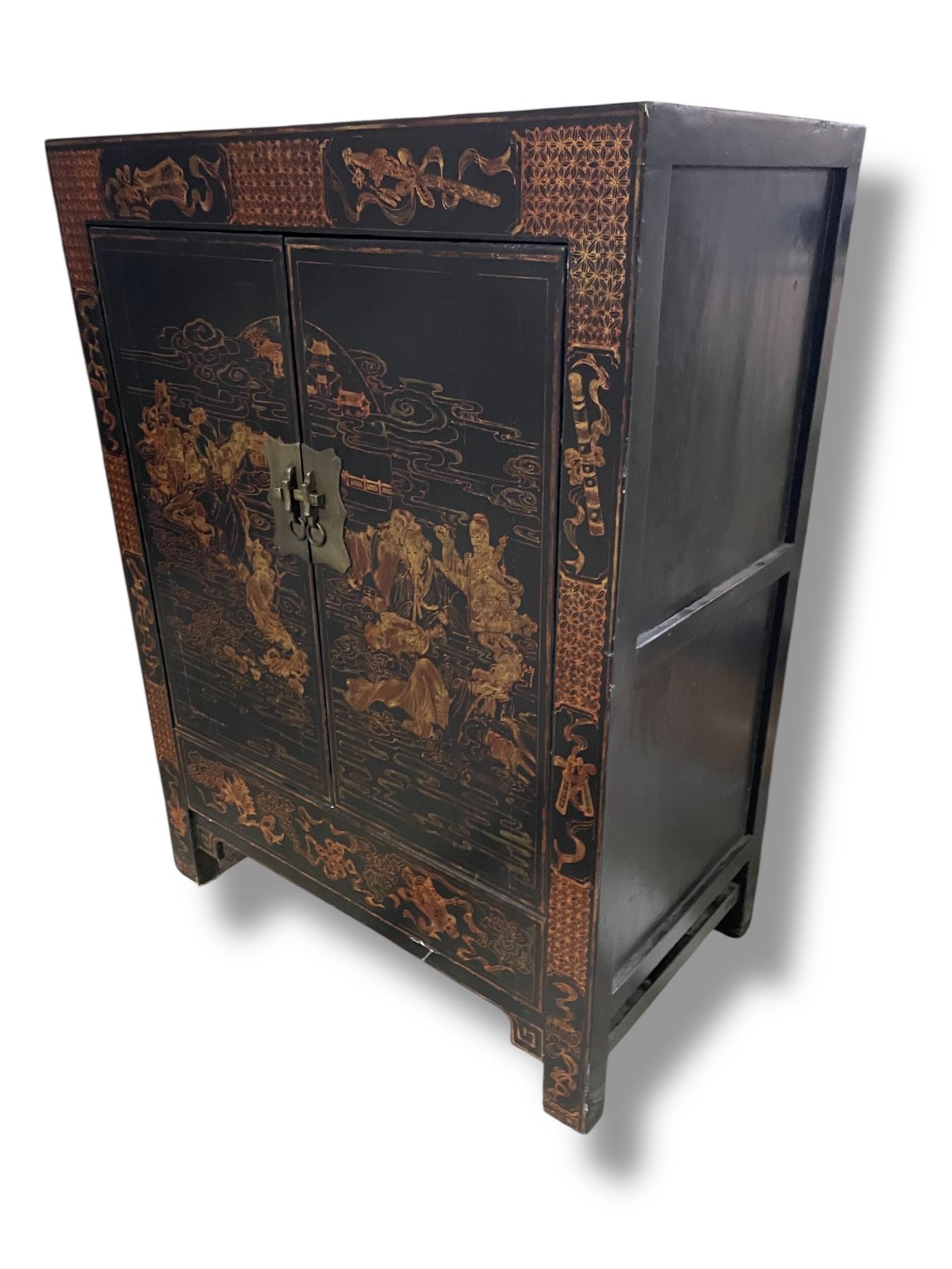 Vintage Chinese Cabinet - Lacquered with Brass Fitting - 17" x 30" x 40" tall