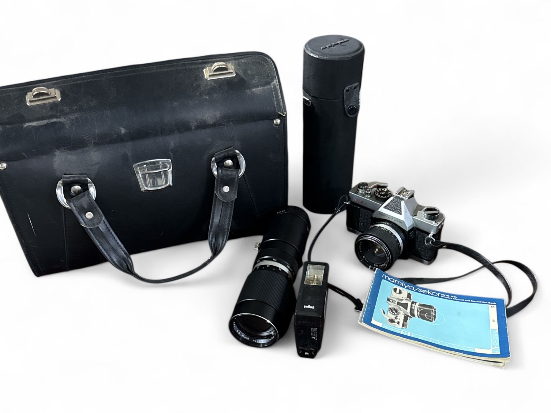 Vintage Mamiya/Sekor Auto XTL Camera Set - Includes camera, flash, telephoto lens, carrying case, etc.