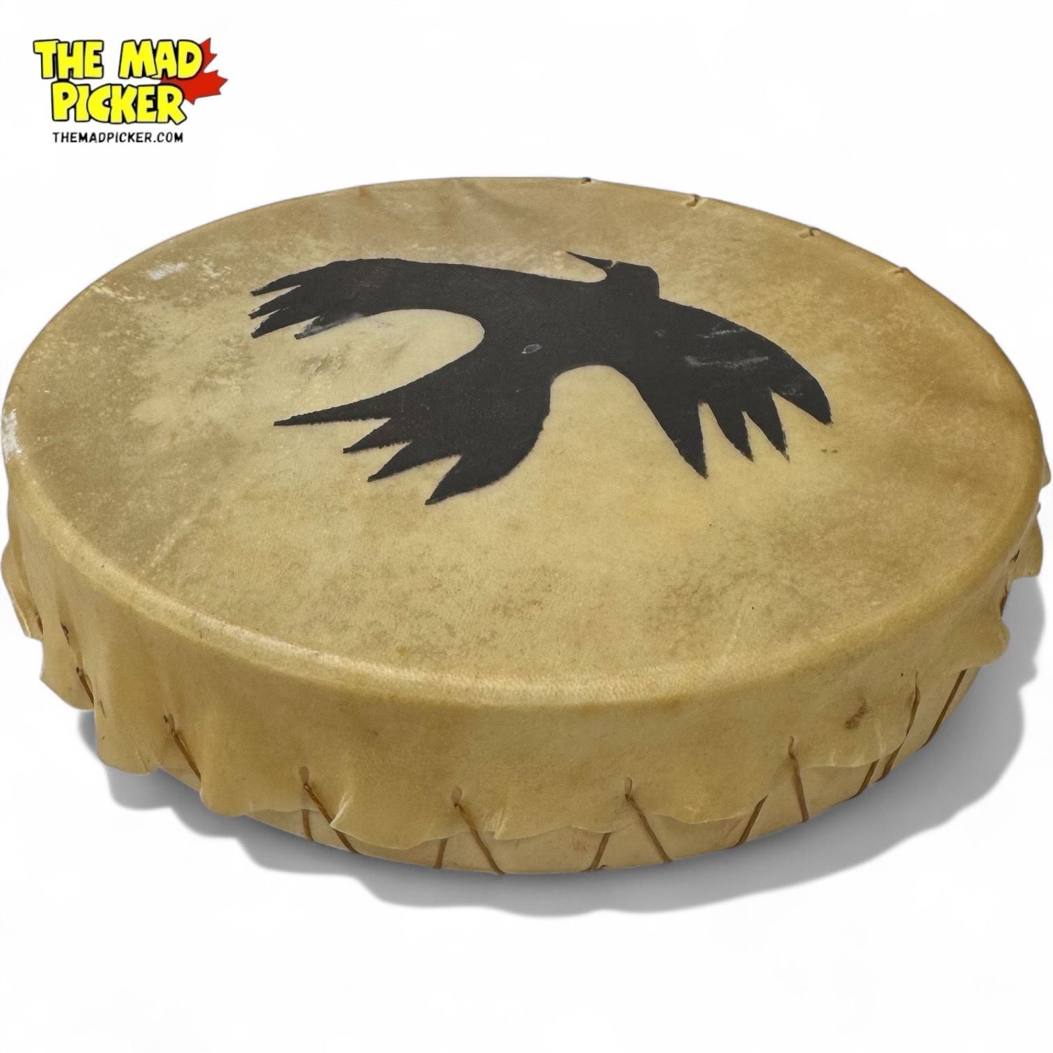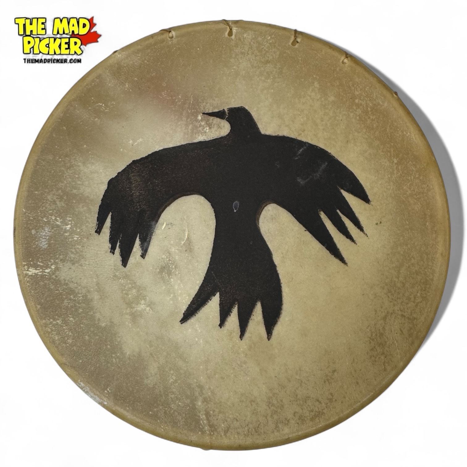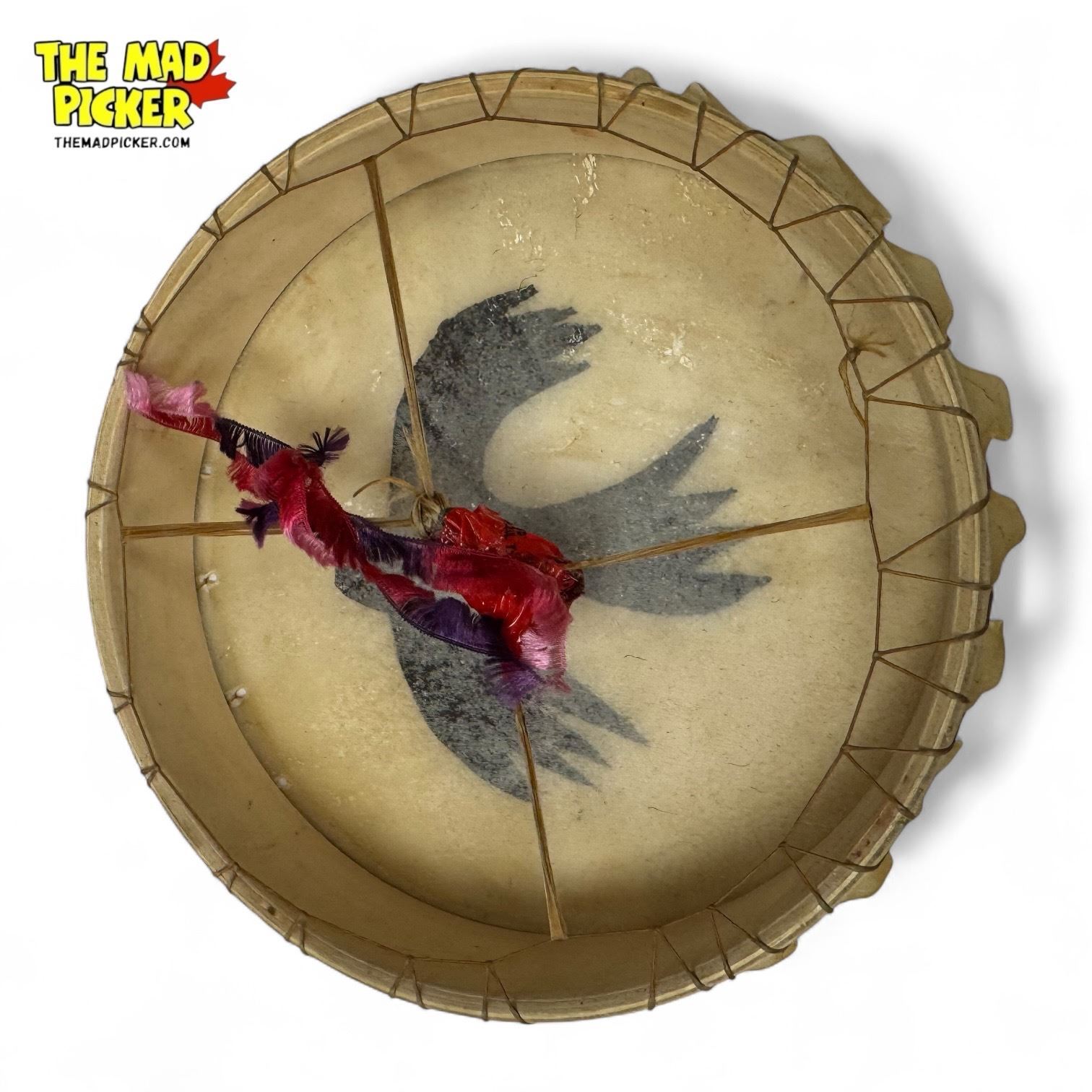 Vintage Martin Y Signed First Nations Hand Made Hide Drum With Bird Motif