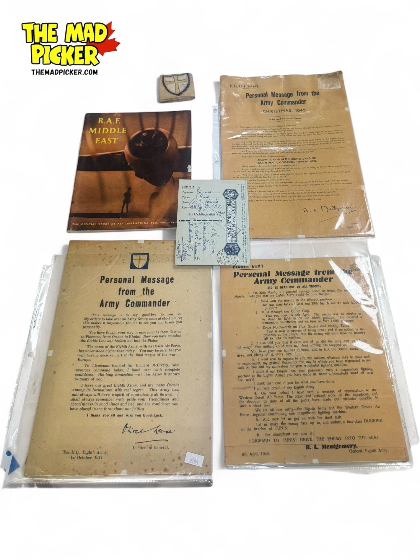 Vintage Military Ephemera : Personal Messages, RAF Middle East Magazine, Cross Patch & Post Card